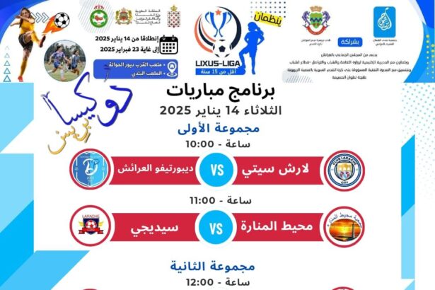 تنطلق يوم الثلاثاء 14 يناير 2025 منافسات بطولة Lixus-Liga التي تجمع فرقًا محلية في أجواء رياضية وحماسية. ستُقام المباريات في…