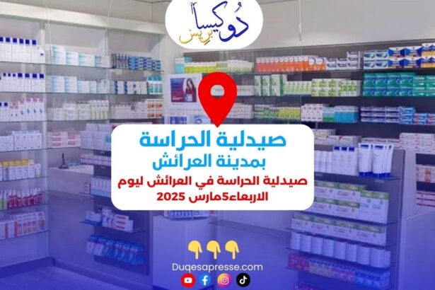 ذا كنت بحاجة إلى زيارة صيدلية في العرائش ليوم الاربعاء5مارس 2025 ، نقدم لك تفاصيل حول الصيدلية لتلبية احتياجاتك الصحية…