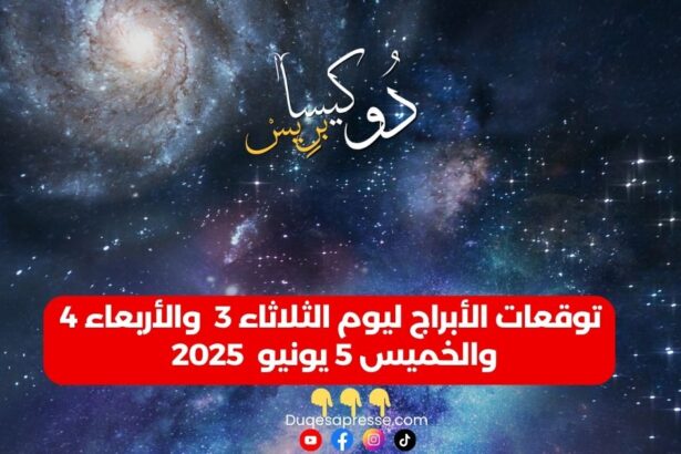 أهلا متابعين موقع وصفحة دوكيسا بريس توقعات الأبراج ليوم الثلاثاء 3 يونيو . القمر ببرج العذراء الأربعاء 4 والخميس 5…