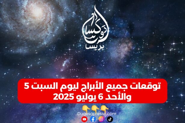 أهلا متابعين موقع وصفحة دوكيسا بريس : توقعات جميع الأبراج ليوم السبت 5 والأحد 6 يوليو 2025 وأخيرا كوكب الزهرة…