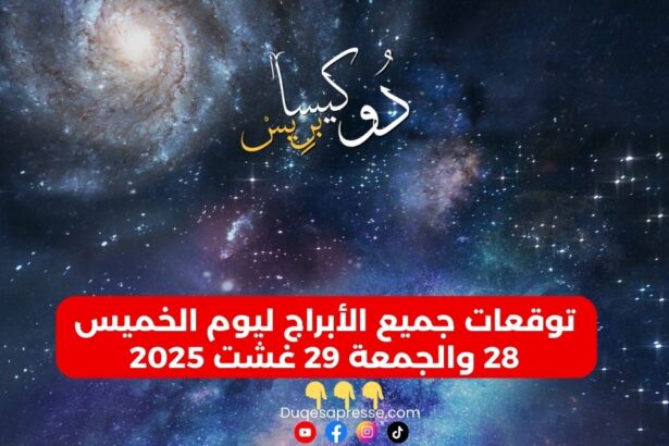 أهلا متابعين موقع وصفحة دوكيسا بريس توقعات جميع الأبراج ليوم الخميس 28 والجمعة 29 غشت 2025 القمر ببرج العقرب لكن…