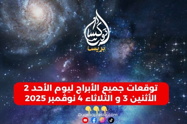 أهلا وسهلا متابعين موقع وصفحة دوكيسا بريس توقعات جميع الأبراج ليوم الأحد 2 الأثنين 3 والثلاثاء 4 نوڤمبر 2025 حركة…
