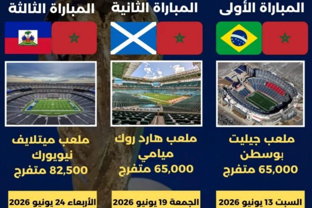 أسود الأطلس أمام ثلاث محطات حارقة داخل ملاعب أمريكية ضخمة: 🇧🇷 البرازيل – البداية القوية من بوسطن يوم 13 يونيو…