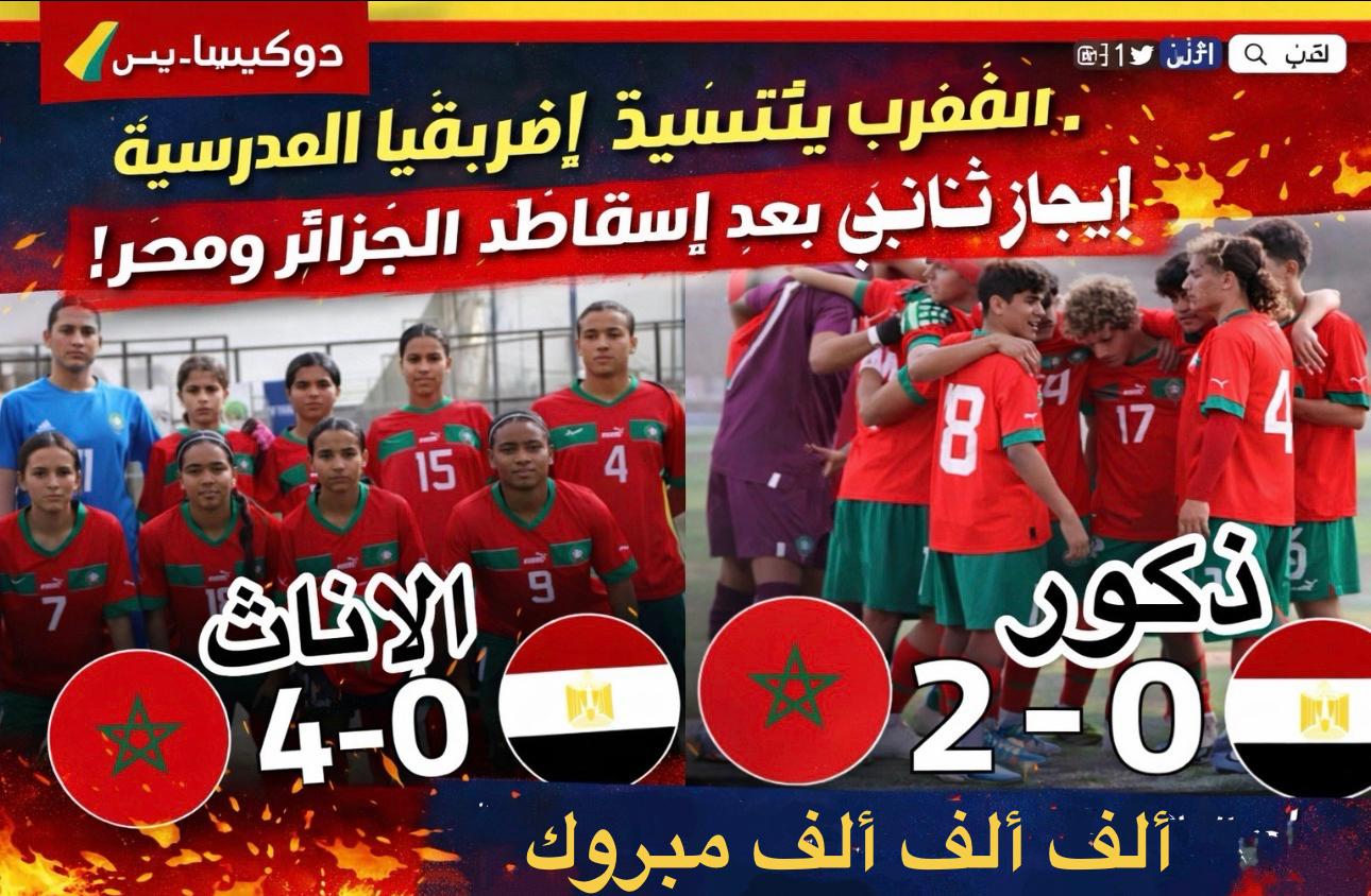 في إنجاز كروي لافت يؤكد الهيمنة المغربية على مستوى الفئات الصاعدة، نجح المنتخبان المغربيان المدرسيان، ذكورًا وإناثًا، في التتويج بلقب كأس إفريقيا المدرسية، بعد مسار مثالي حمل الكثير من الرسائل…