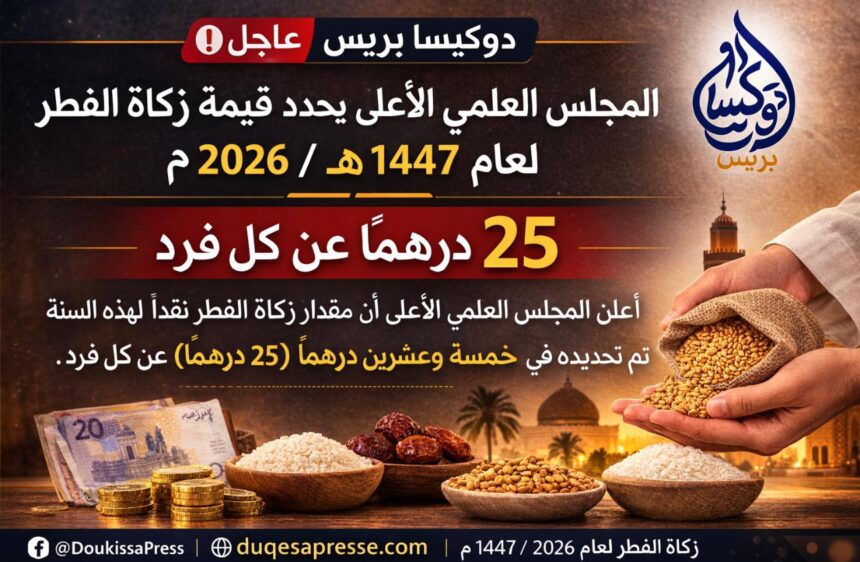 أعلن المجلس العلمي الأعلى بالمملكة المغربية عن تحديد مقدار زكاة الفطر نقداً برسم سنة 1447 هـ / 2026 م في مبلغ خمسة وعشرين درهماً (25 درهماً) عن كل فرد.