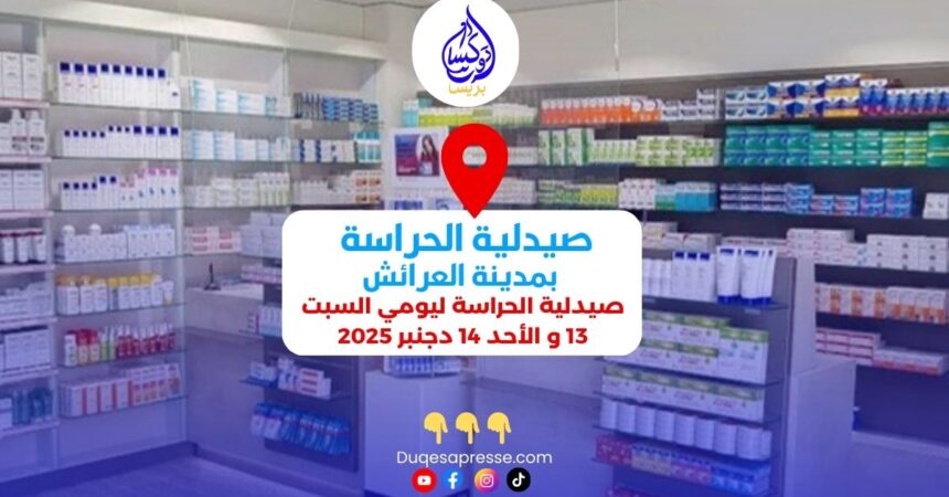 ادا كنت بحاجة إلى زيارة صيدلية في العرائش ليومي السبت 13 و الأحد 14 دجنبر 2025 ، نقدم لك تفاصيل حول الصيدلية لتلبية احتياجاتك الصحية .