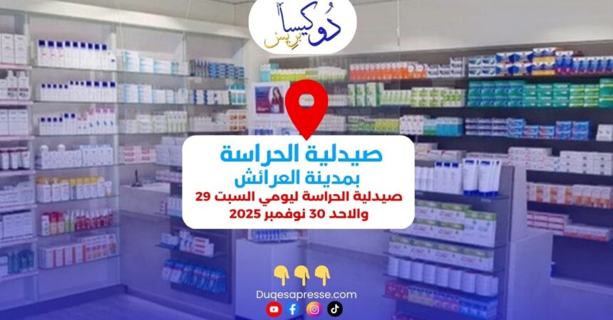 صيدلية الحراسة ليومي السبت 29 والاحد 30 نوفمبر 2025